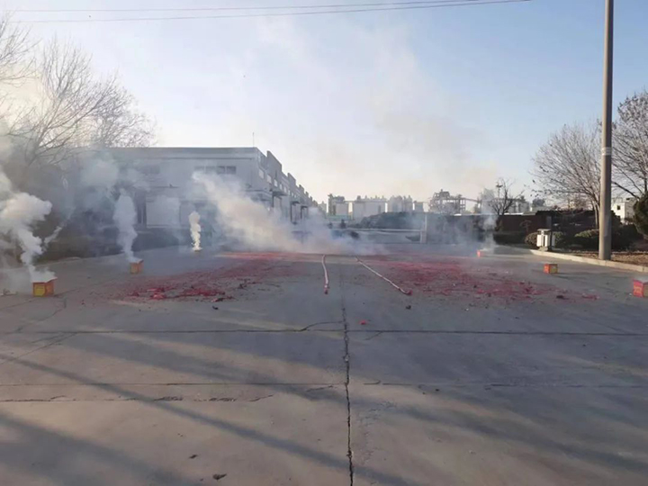8:18分,陆宇第一工业园与第二工业园门口同时鞭炮齐鸣,震耳隆隆的大红炮仗声敲响了新一年的大门,寓意兔年红红火火!