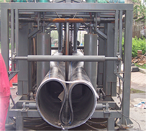 内衬PE管修复技术是将PE管缩径后插入原管道内,通过胀管工艺使衬管与原管紧紧贴合于一体,形成“管中管”结构。具体做法是:选用外径尺寸与旧管道内径相同的 PE管,利用专用设备将待穿插的PE管压缩成形,且使PE管截面积减小到原来的70%左右时将其捆绑固定并穿插于旧管道之中,然后利用高压空气将其胀开,使PE管外壁紧密地衬贴在旧管道内壁上。利用PE管自身材质制作法兰,新法兰与管道本是一体,减少了焊接工序。严密性好,既节省成本,又提高工程质量。修复后的管道具有原管和PE管的综合性能。其优点是: