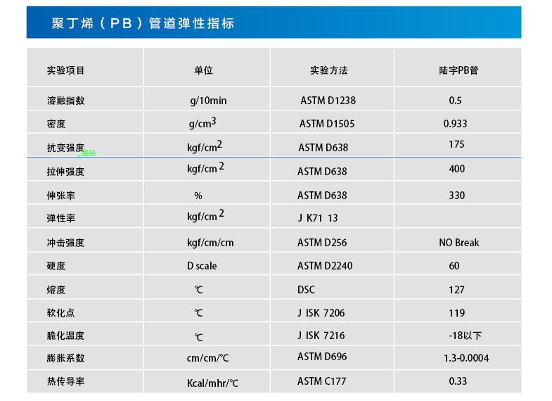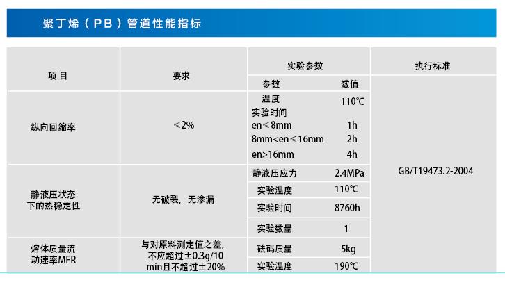 以PB材料制成的PB管道其耐热蠕变性优异,在95℃下可长期使用,高使用温度可达110℃,并由良好的耐环境应力开裂性,且管材质轻、柔韧、抗冲击性好,且连接方式灵活可靠,在诸多方面超越了其他塑料管道。