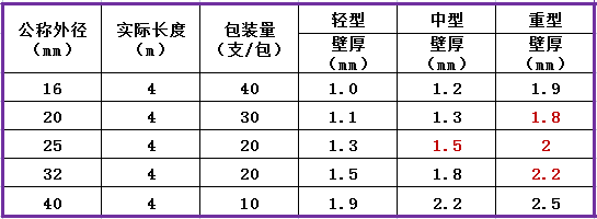 电信套管管材规格 单位:mm