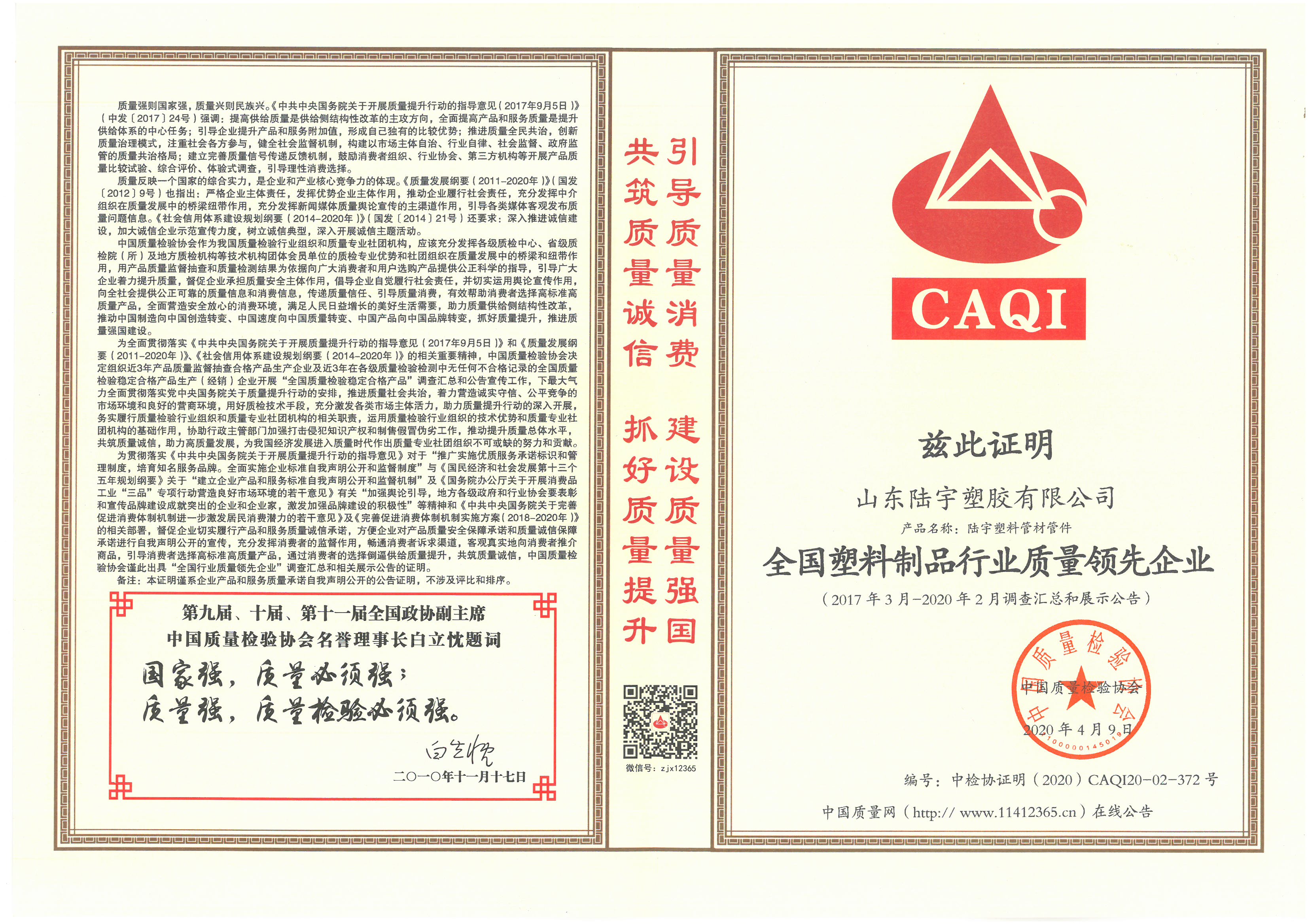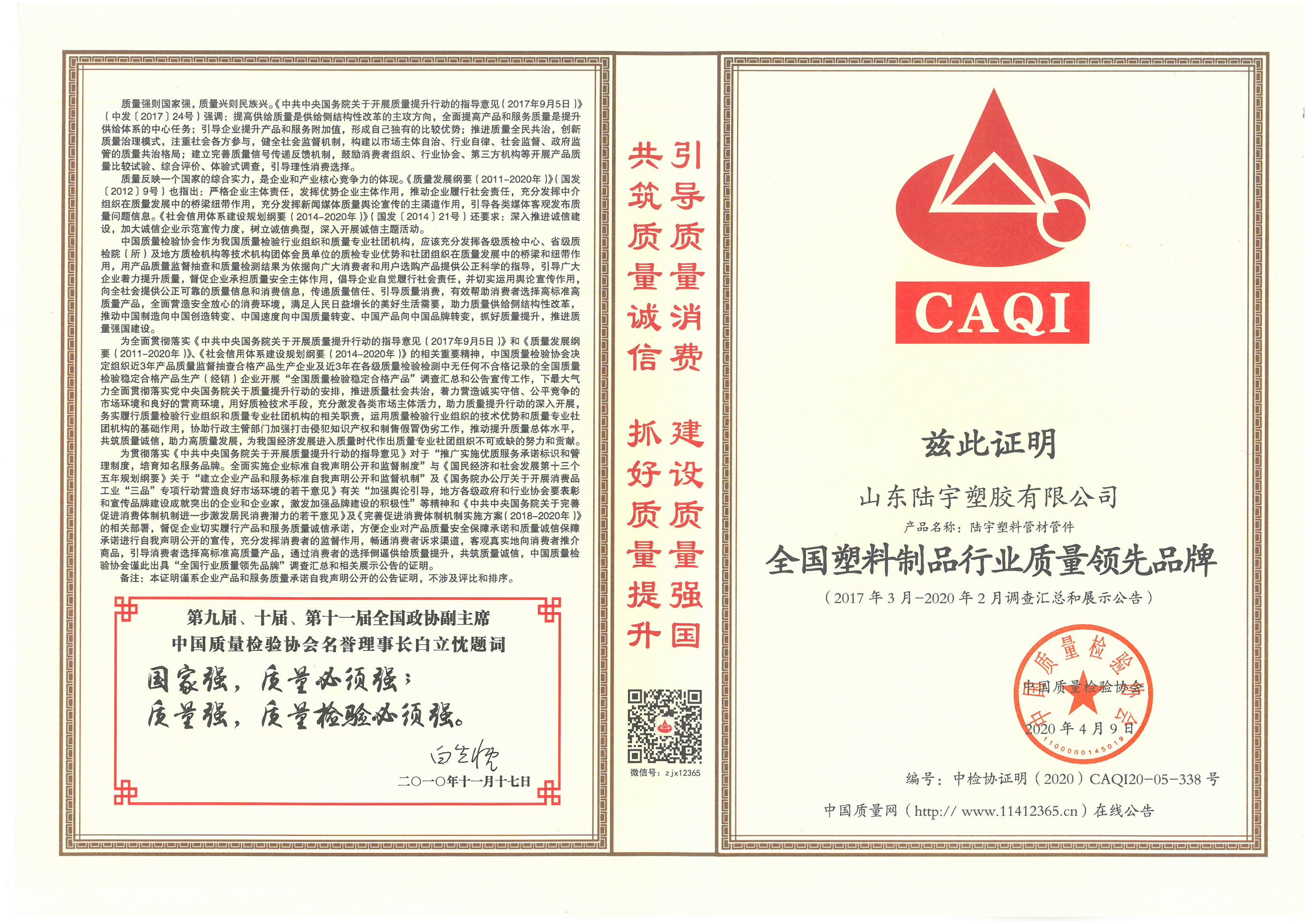 全国塑料制品行业质量领先品牌