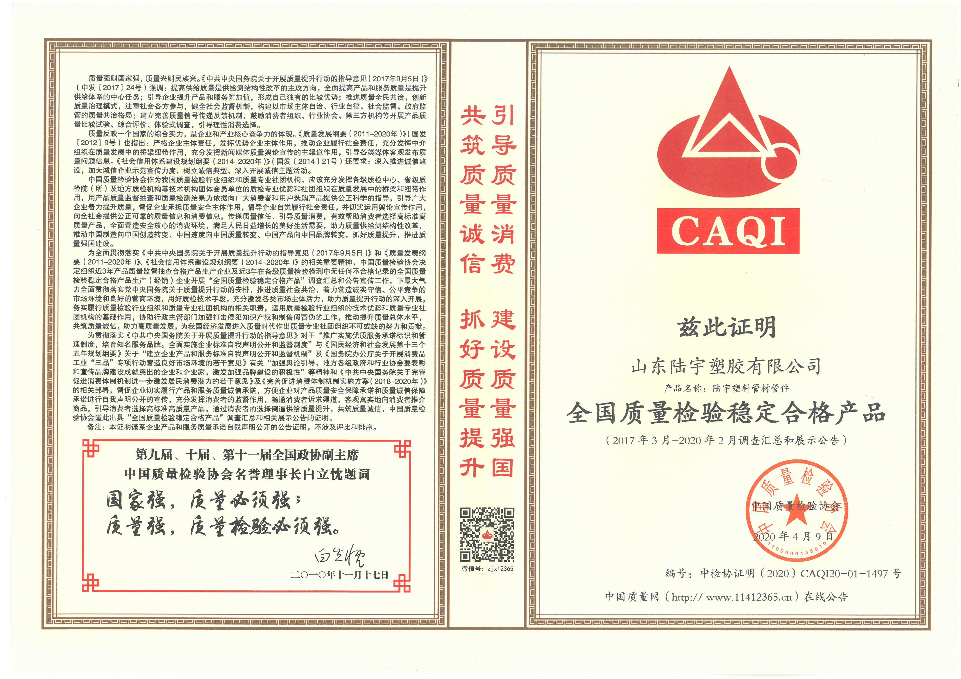 全国质量检验稳定合格产品