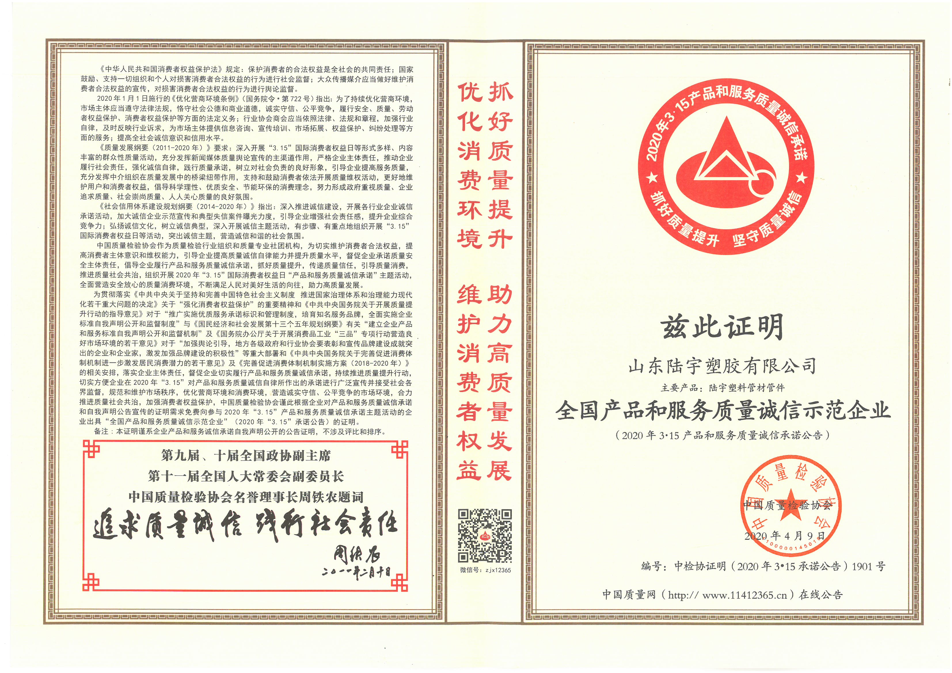 全国产品和服务质量诚信示范企业